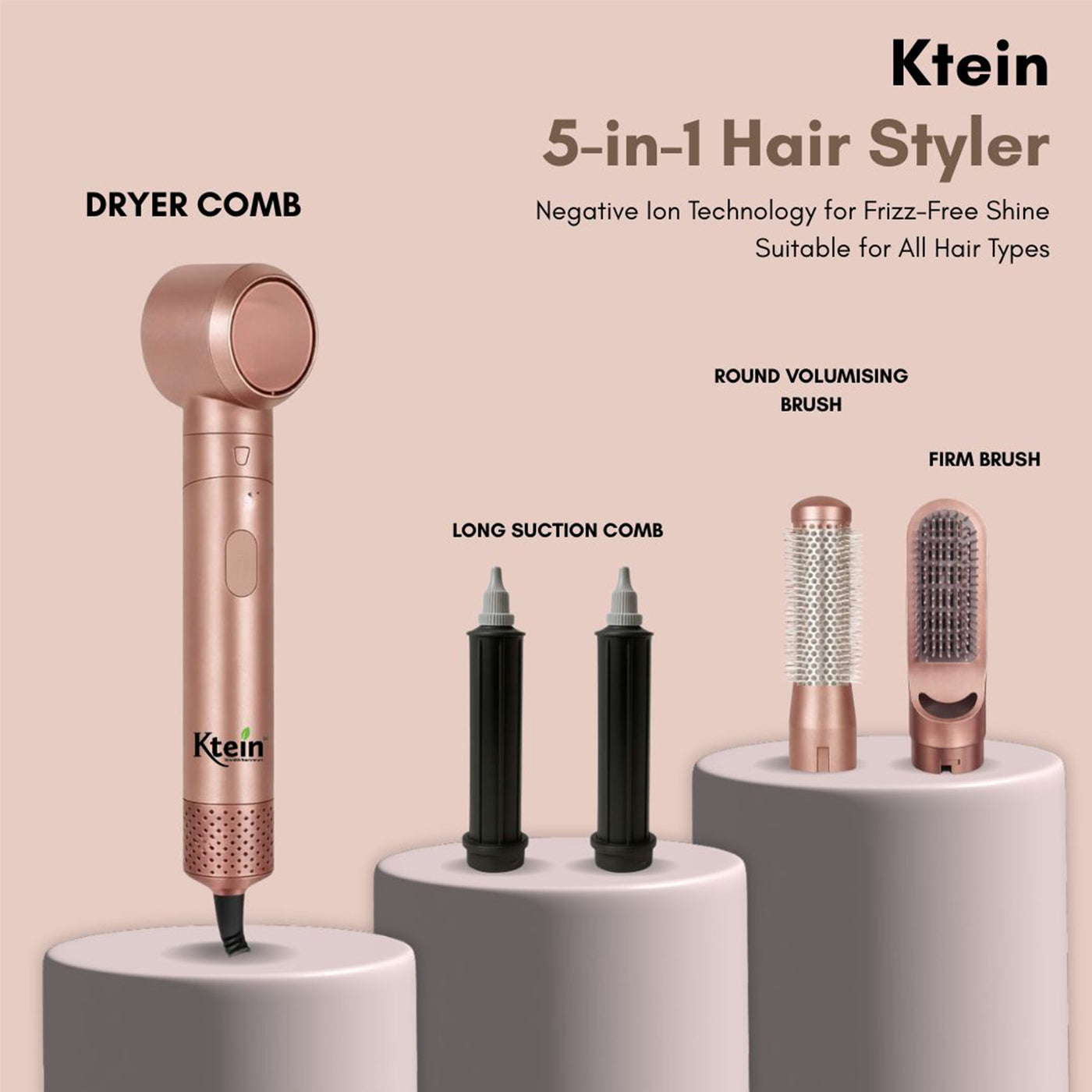 Ktein Hair Styling Combo | Extra Shine Heat Protection Spray - 100ml & 5-in-1 Pro Hot Air Styler