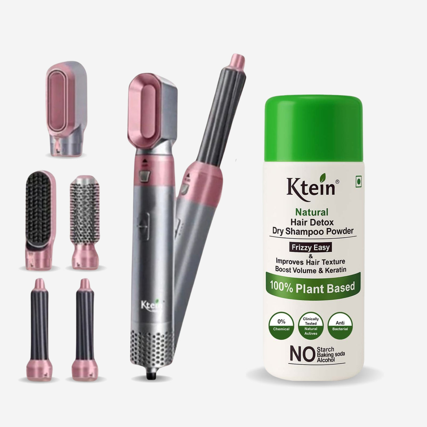 Ktein 5 in 1 Hair Styler Dryer Comb and Styling Tool + Ktein Natural Detox Dry Shampoo: Ultimate Hair Care Combo for Curling, Straightening, Drying, Combing, and Refreshing Your Hair. Upto 25% OFF