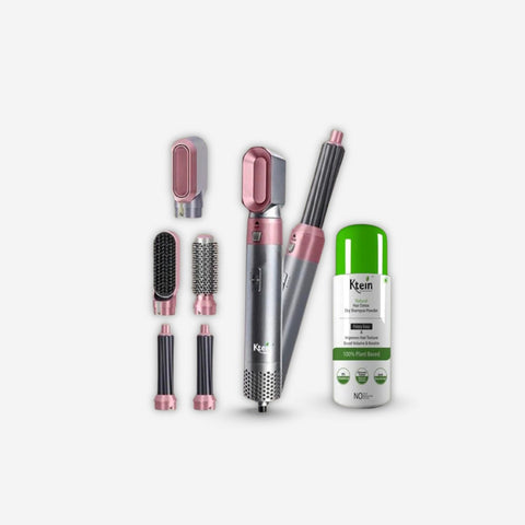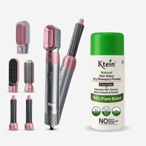 Get the perfect balance of style and care with the Ktein Ultimate Hair Care Combo, featuring the 5-in-1 Hair Styler Dryer Comb and Ktein Natural Detox Dry Shampoo Powder. This powerful duo lets you style, refresh, and rejuvenate your hair effortlessly. The 5-in-1 Styler acts as a dryer, curler, straightener, volumizer, and comb, powered by ionic ceramic technology for smooth, shiny, frizz-free results. Pair it with the 100% plant-based Detox Dry Shampoo, which instantly absorbs excess oil, refreshes your scalp, and adds volume without water. Together, they deliver salon-style results with natural nourishment — anywhere, anytime. ✓-Complete styling + cleansing combo for effortless hair care.
