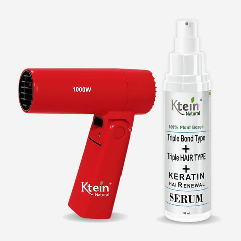 Ktein Combo Mini Hair Dryer & Triple Bond+ Triple Layer Repair Serum - 1000W Compact Travel Dryer with Concentrator Nozzle and Dual Function Switch, Ultimate Hair Restoration Serum for Revitalized, Healthy Hair Upto 25% OFF